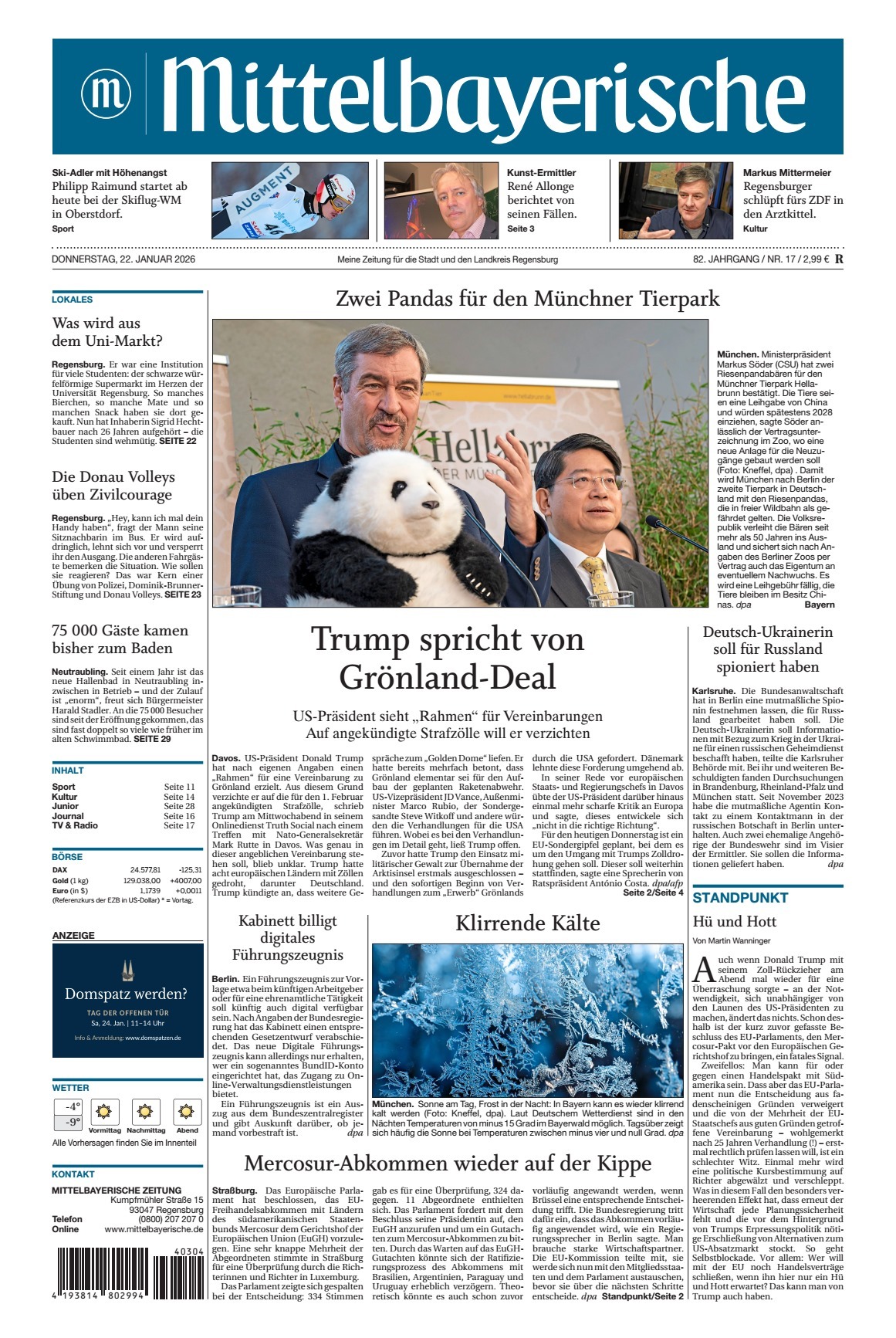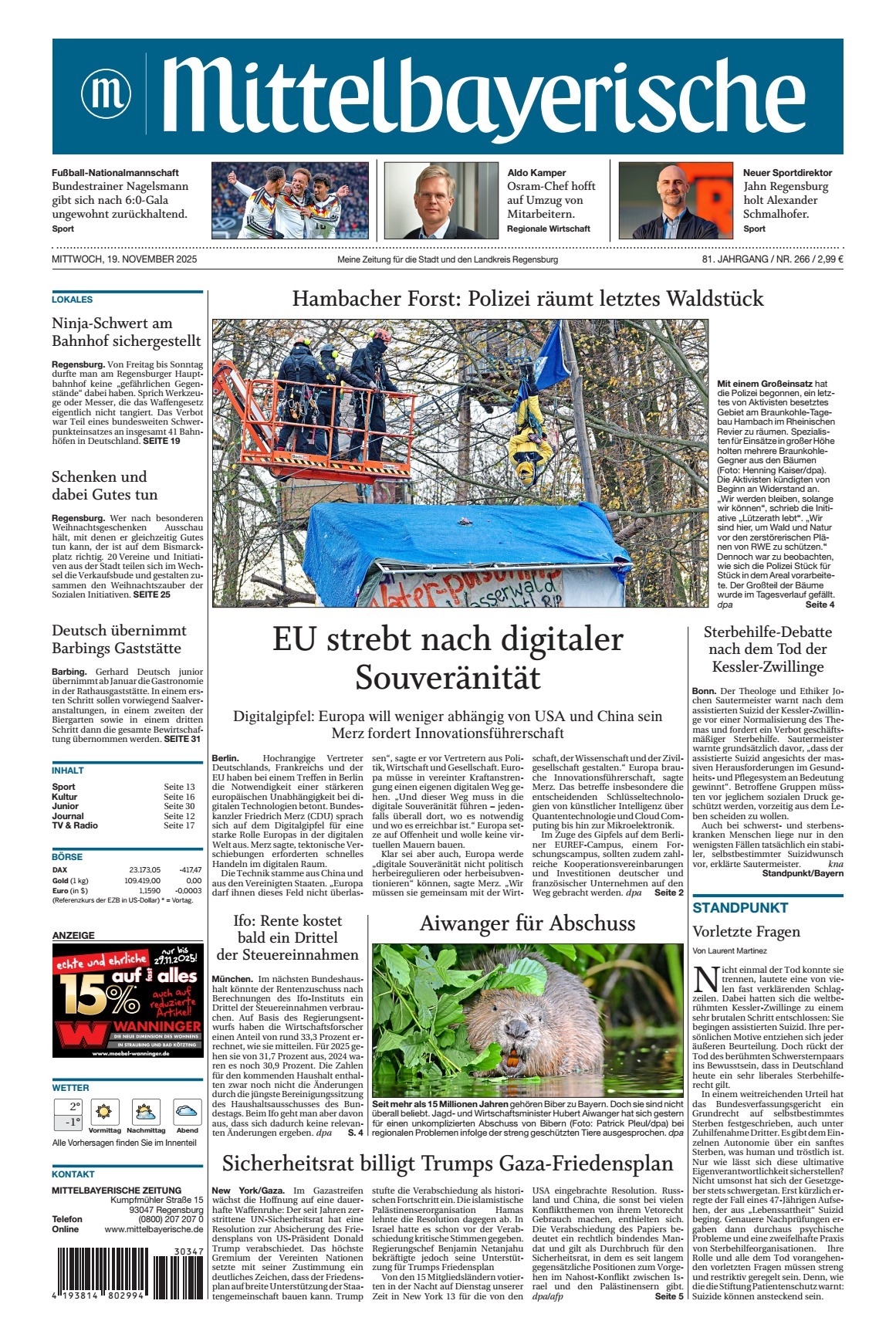 Hier können Sie die Mittelbayerische Zeitung und ihre regionalen Ausgaben als PDF-Dokument direkt online kaufen und sofort lesen.